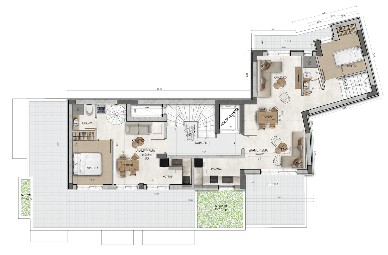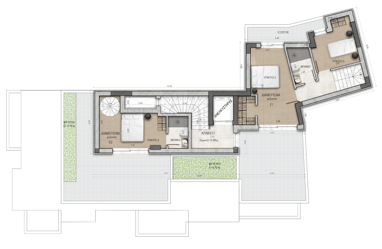 Maisonette E2 is a sleek and efficiently designed two-level residence, currently under construction in Ampelokipoi, a vibrant urban neighborhood that balances tranquility with direct access to key services and transit. With a total area of 67 sq.m., this home spans the 5th and 6th floors of a modern development, making smart use of space for everyday comfort and contemporary living.